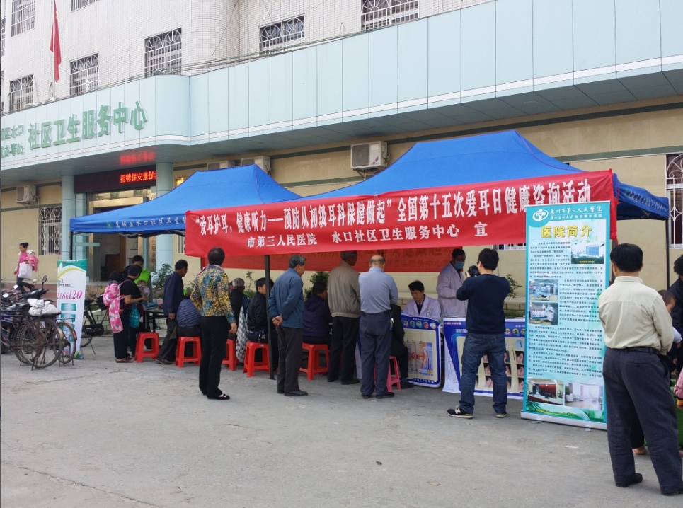 全球有3.6亿听力残疾人,占总人口的5.3%,而听力残疾中50%可通过初级耳科保健加以预防和避免。为迎接全国第15个爱耳日的到来,大力宣传初级耳科保健在听力残疾预防中的重要性和必要性,惠州市第三人民医院耳鼻咽喉-头颈外科王豪主任携医疗团队来到水口镇老街,与水口社区卫生服务中心一同为老街居民免费检查耳朵及听力情况。