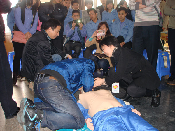 为普及急救知识,2014年3月12日上午,惠州市第三人医院在惠州市公共汽车总公司举行了急救知识培训讲座活动。由急诊科林月雄医生主讲,并现场指导职工如何操作心肺复苏。我院志愿者服务队组织数名志愿者到场协助。