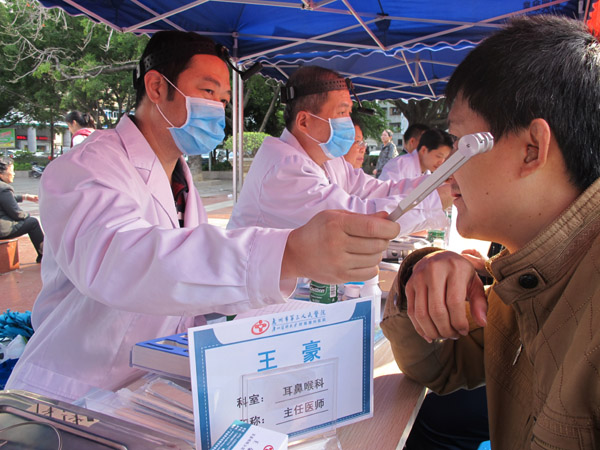 (一)水口社区卫生服务中心门前举办的“爱耳护耳,健康听力—预防从初级耳科保健做起”全国第十五次爱耳日健康咨询活动。义诊总人数56人,发放各类健康资料336份。