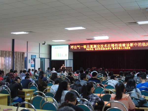 3月27日下午,广州呼吸疾病研究所赖克方教授应邀来我院进行学术讲座。本次活动由惠州市惠城区医学会、惠州市第三人民医院共同举办,讲座题目为《呼出气一氧化氮测定技术在慢性咳嗽诊断中的临床应用》,我院及其它兄弟单位医务人员共计200余人参加了学术活动。