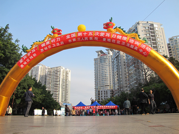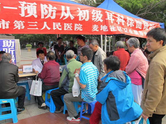 33是全国第十五个“爱耳日”,今年的主题是“爱耳护耳,健康听力—预防从初级耳科保健做起”。为了大力宣传初级耳科保健在听力残疾预防中的重要性和必要性,我院在惠城区卫生局指导下,分别联合惠城区残联、麦地社区卫生服务中心、桥西社区卫生服务中心、水口社区卫生服务中心及芦洲医院等单位,于22533开展了为期一周的爱耳护耳健康宣教活动,共为千余名市民提供了耳部疾病检查及健康咨询,并为听力下降的中老年人免费做了听力检测。