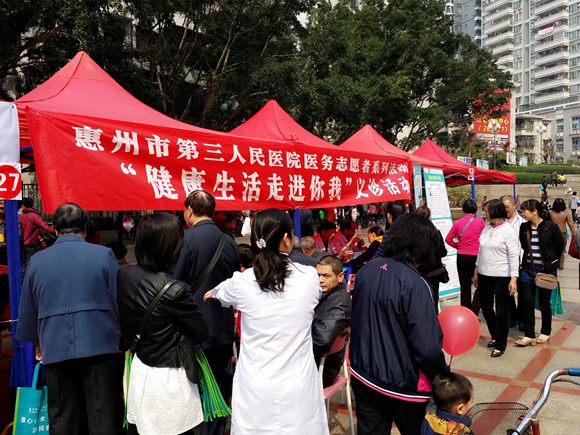 31823日是我市首届社工宣传周,本届宣传的主题是“幸福惠州 社工同行”,我院共有二十余名医务工作者志愿参与到活动中来,为七百余名市民提供了健康咨询服务。