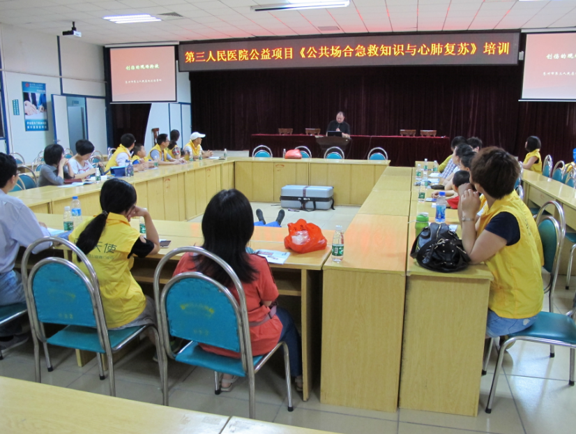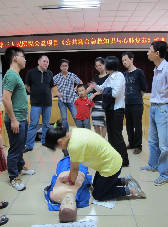 面对突发事件,广大市民往往缺乏自救互救的技能和经验,普遍感到紧张不安、手足无措。鉴于公众急救常识的匮乏,我院自今年3月份开始陆续向公共场所服务人员及一些公职人员免费开展了一系列创伤急救及心肺复苏的培训,希望通过这种方式让大家在紧急情况下可以拯救他人,保护自己。活动开展以来已为448位公交司乘人员及725位交通协管员开展急救常识与心肺复苏培训。