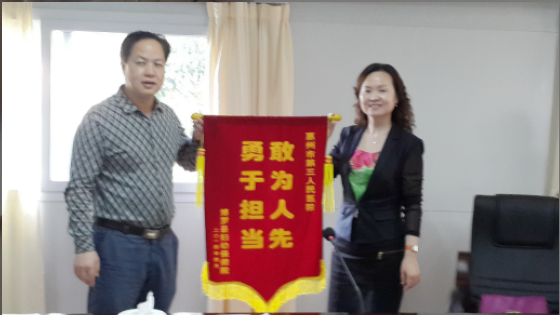 博罗妇幼保健院王筱红院长(右)向惠州市第三人民医院马显力院长(左)赠送锦旗