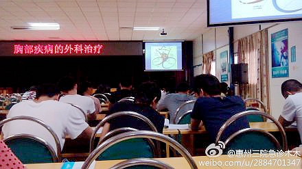讲座于下午1500准时开始,钟卫权主任分别就肺结核、肺脓肿、支气管扩张、胸壁畸形、胸腺瘤等普通胸部疾病的外科治疗作了简洁而又精辟的讲解,介绍了常见胸部疾病的手术指征和手术方式。最后,钟主任还介绍了并不常见的一种疾病——手汗症(指手部汗腺分泌亢进的一种疾病,主要表现为手掌多汗,也可伴有腋部、脚部及头面部多汗。属常染色体显性遗传疾病。原因可能是由交感神经过度兴奋引起)。中度以上需手术,一般采用胸腔镜下胸交感神经切断术。
