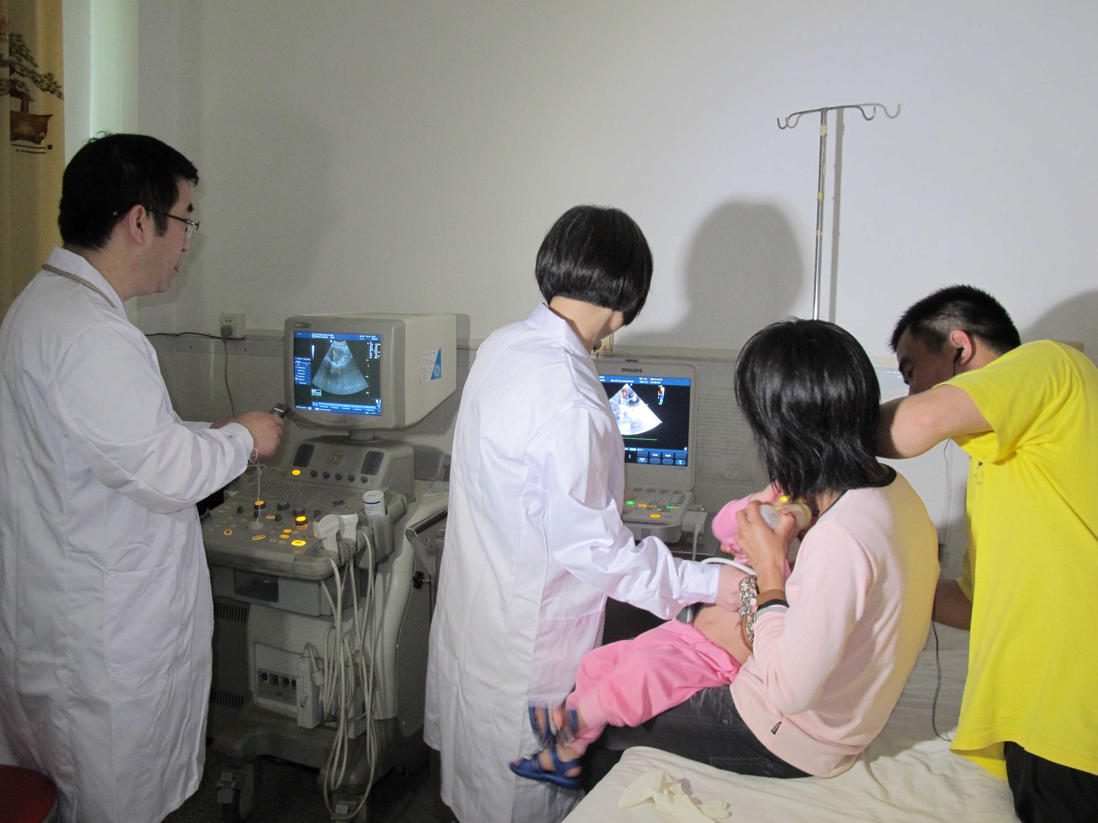 2014年5月21日下午,我院心血管医学中心心胸外科钟卫权主任和刘凌博士带队,携带心脏彩超专业设备来到博罗县公庄镇卫生院,为辖区内5名先心病患儿进一步细致心脏彩超检查(年龄最小不到一岁,最大有六岁多)。