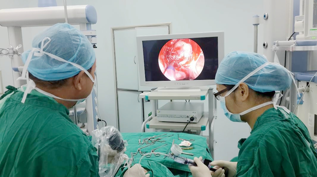 许庚教授(中)于7月4日在我院开展粤东地区首例鼻窦球囊导管技术