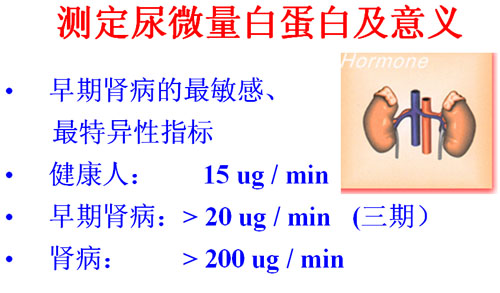 检查尿微量白蛋白的临床意义何在?临床中,通常应用尿微量蛋白指标来监测肾病的发生。尿微量蛋白的检测是早期发现肾病最敏感、最可靠的诊断指标,对于肾病的预防及早期治疗都起积极作用。