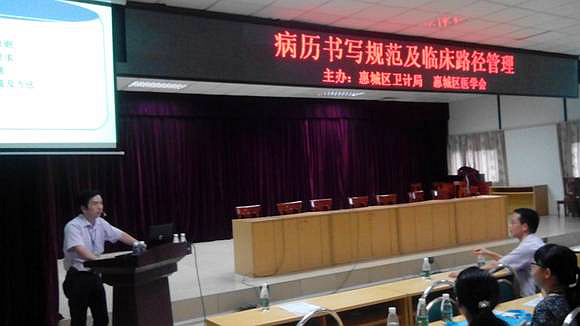 826下午,在我院多媒体会议室举办“病历书写规范及临床路径管理”培训班,培训班由区卫计局及城区医学会主办,我院承办,参加人员有全区各医疗卫生单位骨干成员。