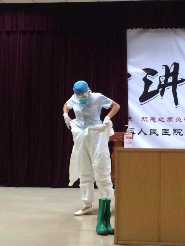 2014年10月31日下午,我院根据上级卫生行政部门相关文件精神要求,在医院工地多功能会议室再次组织医务人员埃博拉出血热疫情防控专题培训。本次培训重点在对病例监测、发现、报告以及医生、护士、后勤保洁、运送、救护车司机等全体医务工作人员进行院内感染预防控制措施,并现场演示如何穿戴、脱隔离防护装备。