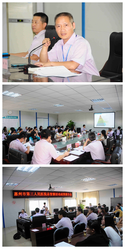2014年10月29日,质量管理部组织在行政5楼会议室举行第一期品管圈成果发布及评审会,会议由肖纯副院长主持,参与评审的专家由陈小凯副院长、评审办黄碧茂主管及陈毓杰同志担任。党办、监察室工作人员负责统分、院务部工作人员负责会务安排及汇报时间控制。此次8个院级品管圈及2个科级品管圈(护理部推荐)共10个品管圈参与评审。