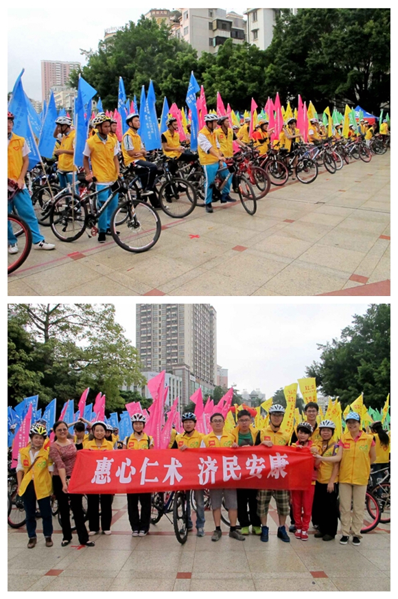 当日早8点半,500名骑行爱好者统一着装,从滨江公园沿南坛路经惠州大桥、东江大桥、西枝江桥开始了全程10公里,抵制“超速、超载、酒驾、毒驾、闯红灯、占用应急车道、不礼让斑马线”等七类违法行为的专题自行车巡游,我院120急救车也志愿跟随车队保健。巡游队伍声势浩荡,严格遵守交规,文明巡游,以身作则宣传交通安全知识,提升市民安全意识。
