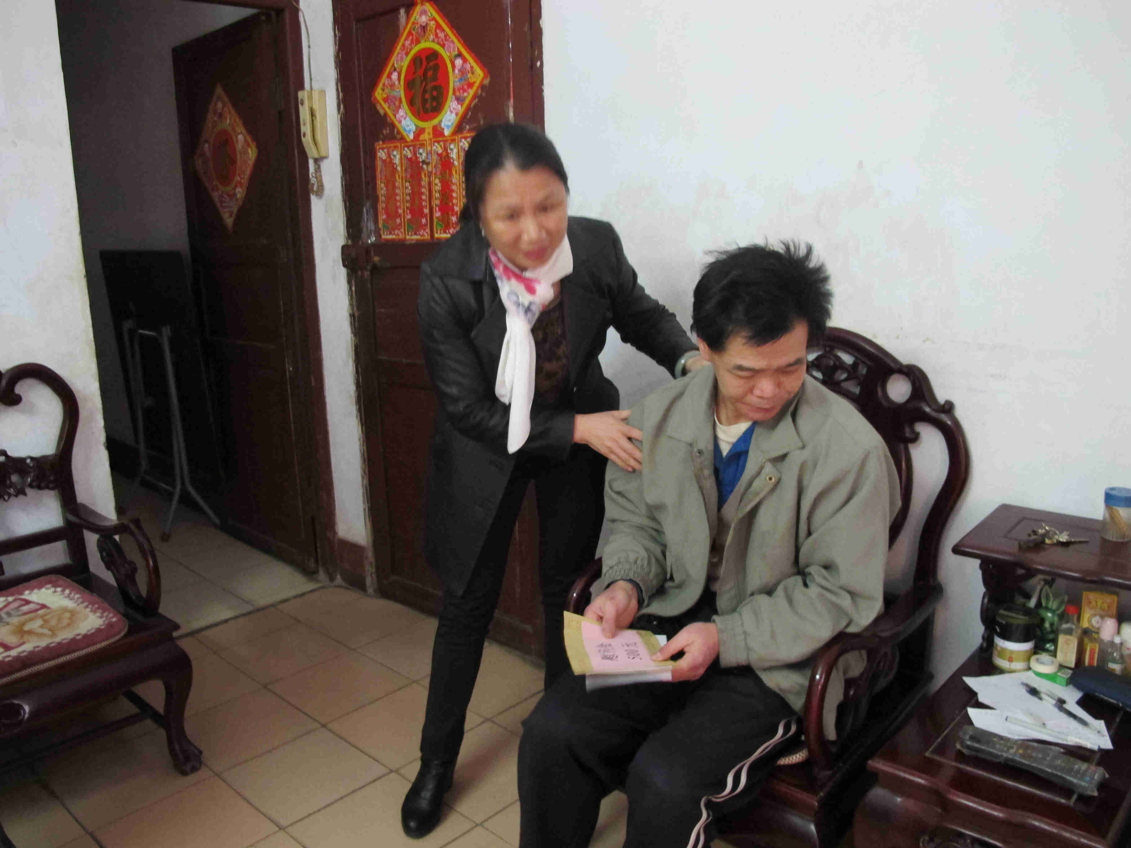 李淑兰主席给张世峰发放慰问金