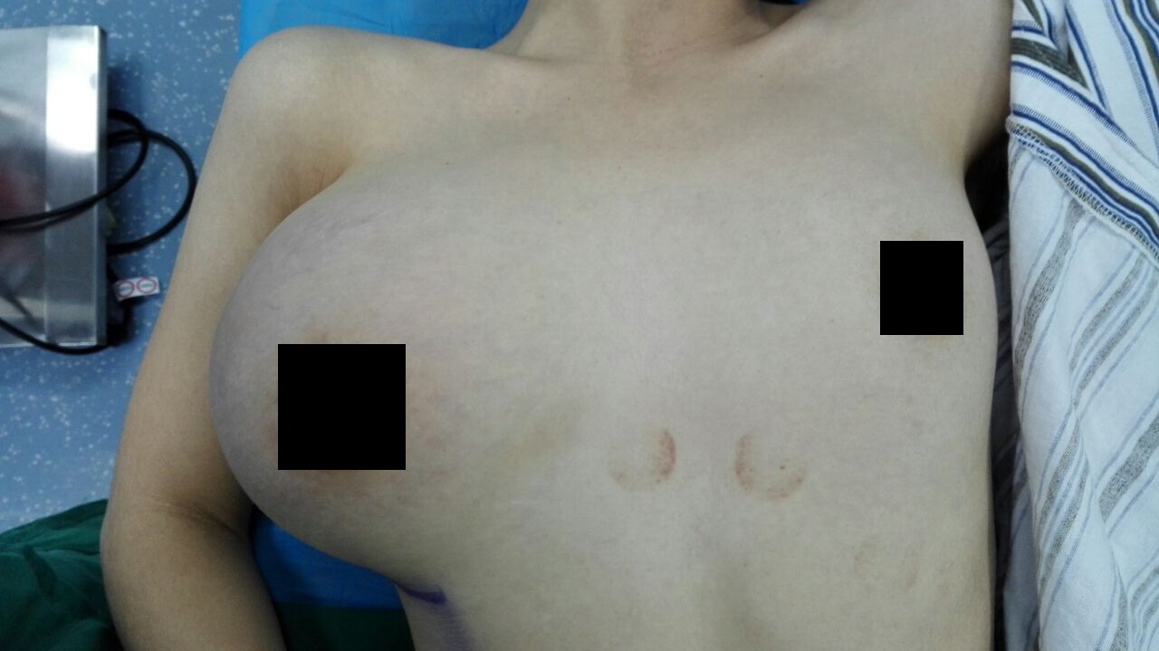 近日,我院乳腺科接诊了一位年青的未婚小姑娘阿敏。她说近一年来,自己的右边乳房在慢慢地变得又圆又大。刚开始,阿敏还以为是发育过程中的正常现象,并且由于羞于求医,便没有理会。没想到转眼一年过去了,右边的乳房长得比左边大了足足56倍!