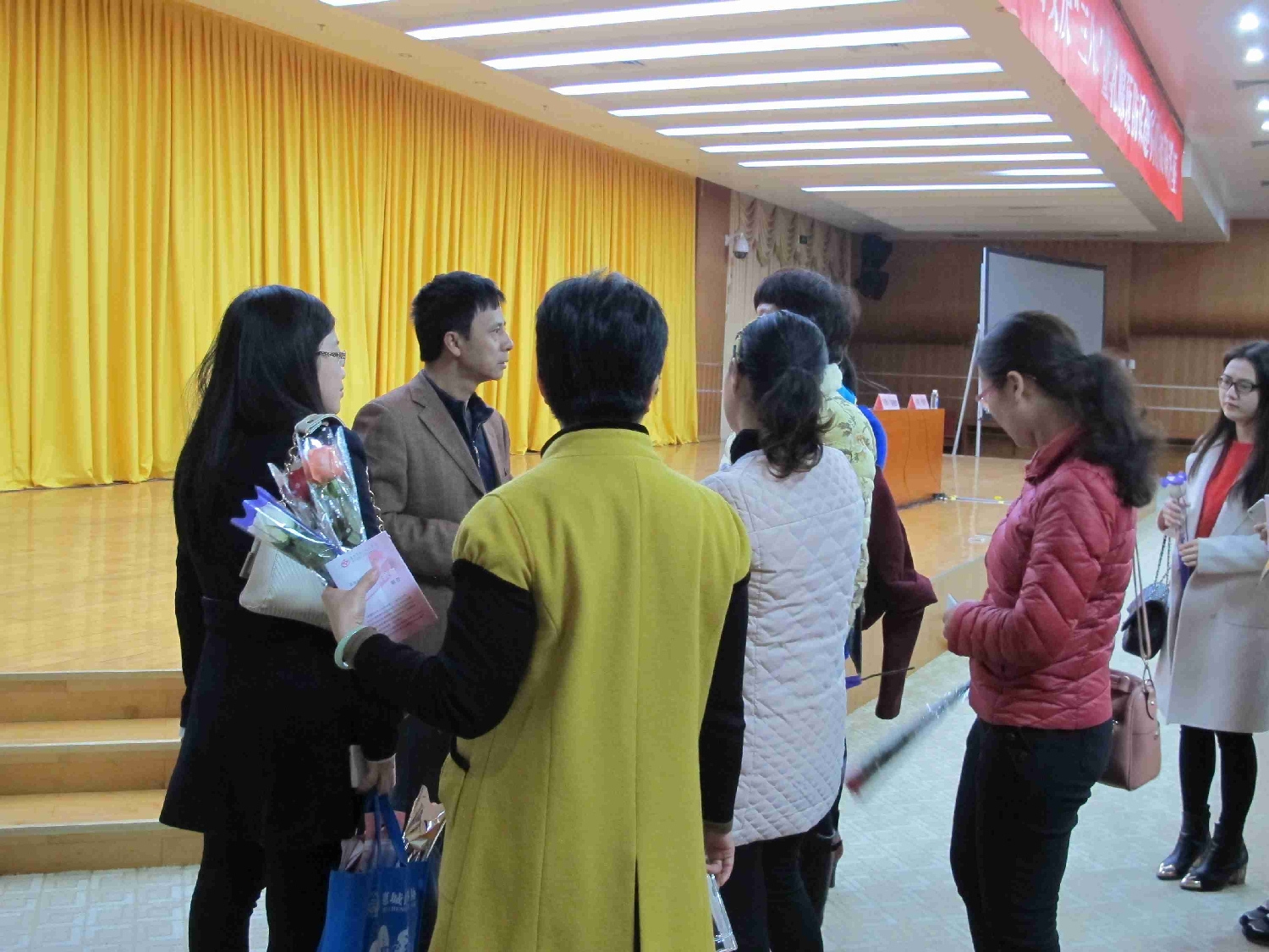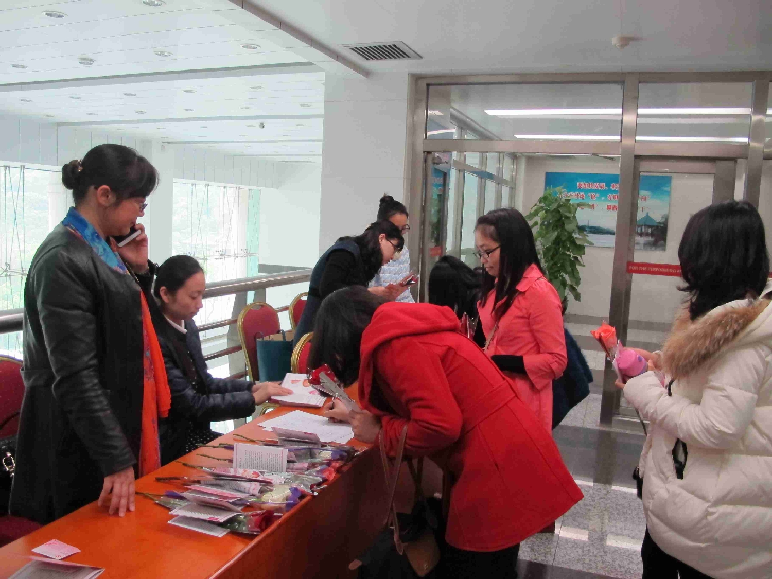 讲座前为女同胞准备的玫瑰和健康手册