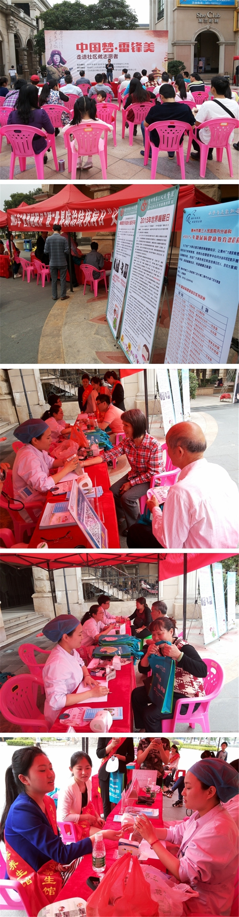 3月是学习雷锋志愿服务月,为更好服务群众,我院结合健康教育主题日“3·21世界睡眠日”和“3·24界防治结核病日”,于321日联合惠城区文明城市工作局在江北帝景湾小区门口开展了“中国梦·雷锋美”义诊咨询活动。