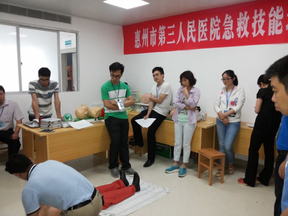 第二阶段为师资培训阶段,由各临床科室及职能部门科室各派2名代表组成医院急救技能师资队伍,专家组成员对师资代表进行为期2周的培训,师资培训共为8期,并已于5月22日完成。