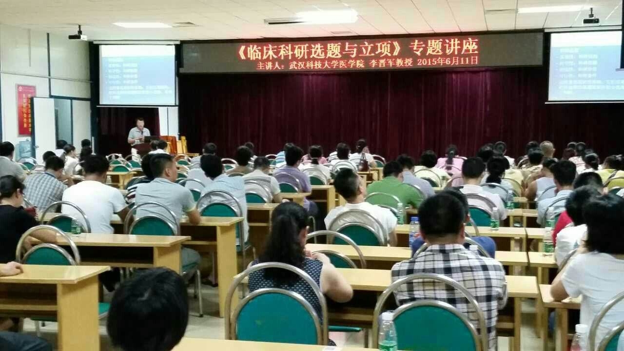 6月11下午,武汉科技大学医学院李晋军教授应邀来我院进行了题为“如何做好科研选题与立项”的专题学术讲座,讲座由科教部简希尧主任主持,全院具有研究生学历及副高职称以上人员参加了讲座。
