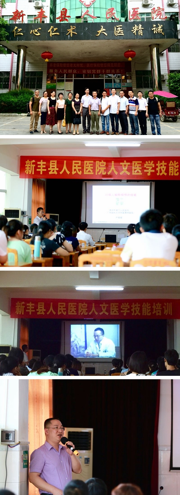 2015年7月4日,肖纯副院长和工会李淑兰主席率领我院人文医学讲师团10名讲师前往韶关市新丰县人民医院开展人文医学技能培训,新丰县人民医院叶宗果院长非常重视和珍惜此次培训机会,安排全院中层干部以上及临床医技科室医师共100人参加,通过培训培养医务人员人文素养,更进一步推动粤北地区人文医学建设。