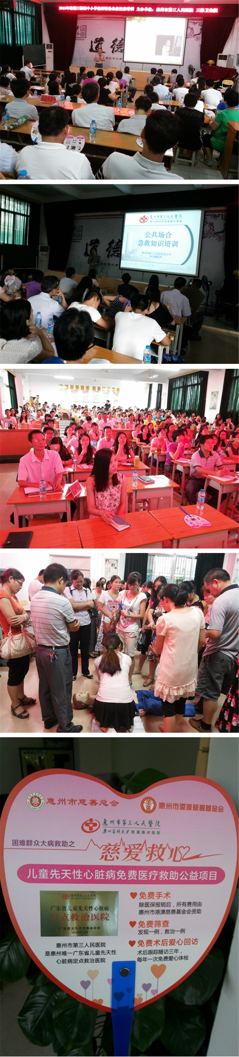 我院也积极参与和倡导社会公益事业,为扩大“慈爱救心”公益项目宣传,急救讲座开讲前,我院心胸外科钟卫权主任花了15分钟简短介绍“慈爱救心”贫困儿童先天性心脏病免费医疗救助项目,市港澳慈善基金会工作人员现场发放了公益项目资料,为了帮助更多有需要的家庭,我们一直在行动!(社会医疗服务部 叶建良)
