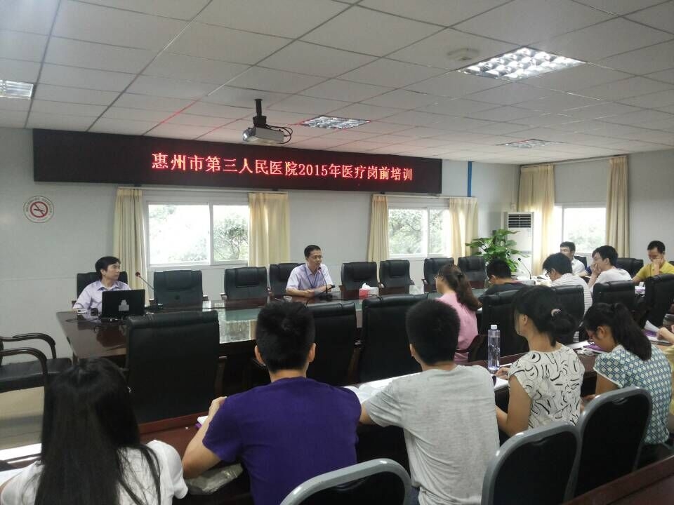 7月23日上午,我院在行政楼五楼会议室举行2015年度新员工医疗岗前培训。培训为期2个半天,培训内容主要包括病历书写规范、医疗技术授权、处方管理办法、病案管理规定及科研课题申报、继续医学教育等,共计40余名新入职医师参加了培训。