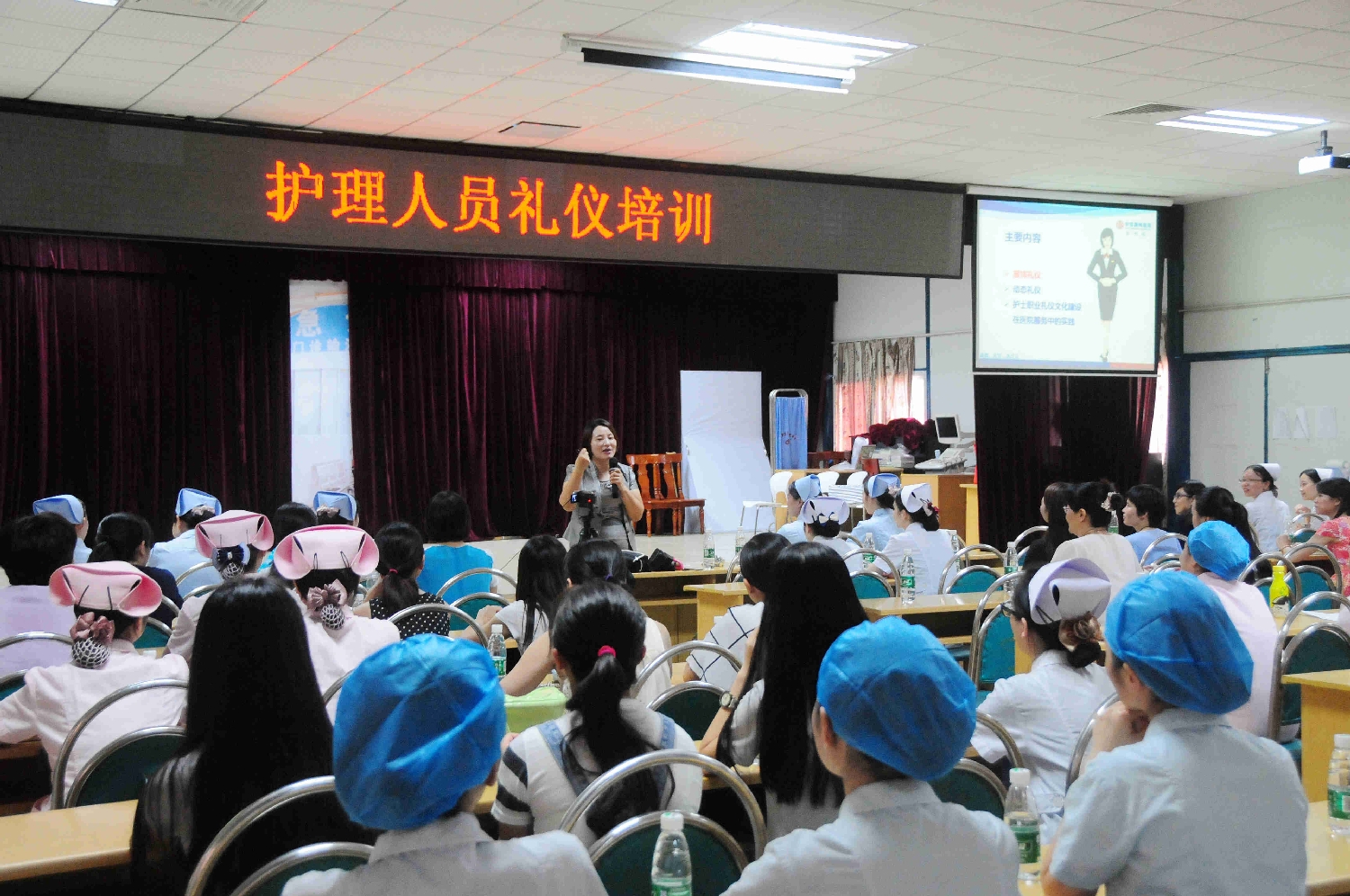 希望通过这次礼仪培训,我们护理同仁们都可以做到:人人代表医院形象,个个都是行业品牌。(护理部