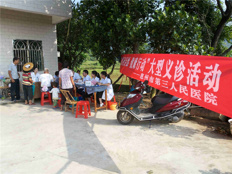 根据“国家卫生计生委办公厅、国家中医药管理局办公室、中国人民解放军总后勤部卫生部医疗管理局《关于开展2015年“服务百姓健康行动”全国大型义诊活动周的通知》(国卫办医函〔2015〕750号”文件要求,2015年9月15日上午,惠州市第三人民医院组织神经内科、眼科及耳鼻咽喉-头颈外科7名医护人员、2名医疗志愿者携带简易设备到惠东县梁化镇新民村开展义诊咨询活动。
