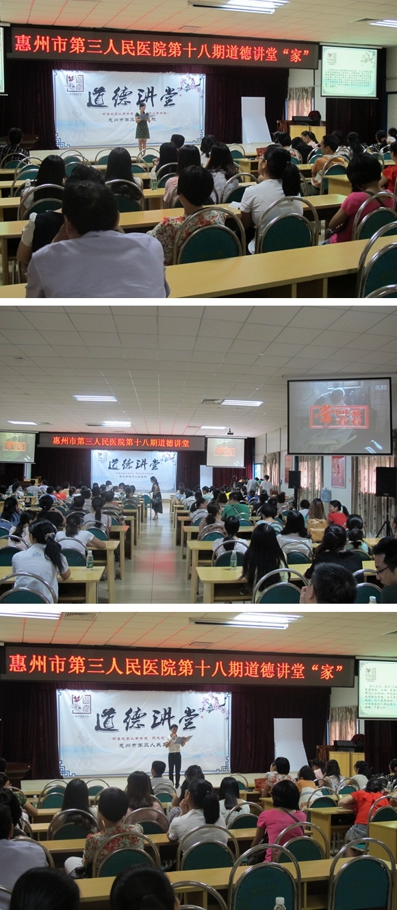 为传承家庭美德、营造文明家风、传播正能量,9月11日下午,医院党委办和妇委会在工地多功能会议室举行了以“家”为主题的“道德讲堂”活动。全院220名干部职工一同走进道德讲堂,接受以弘扬家庭美德、培树良好家风为内容的心灵洗礼。