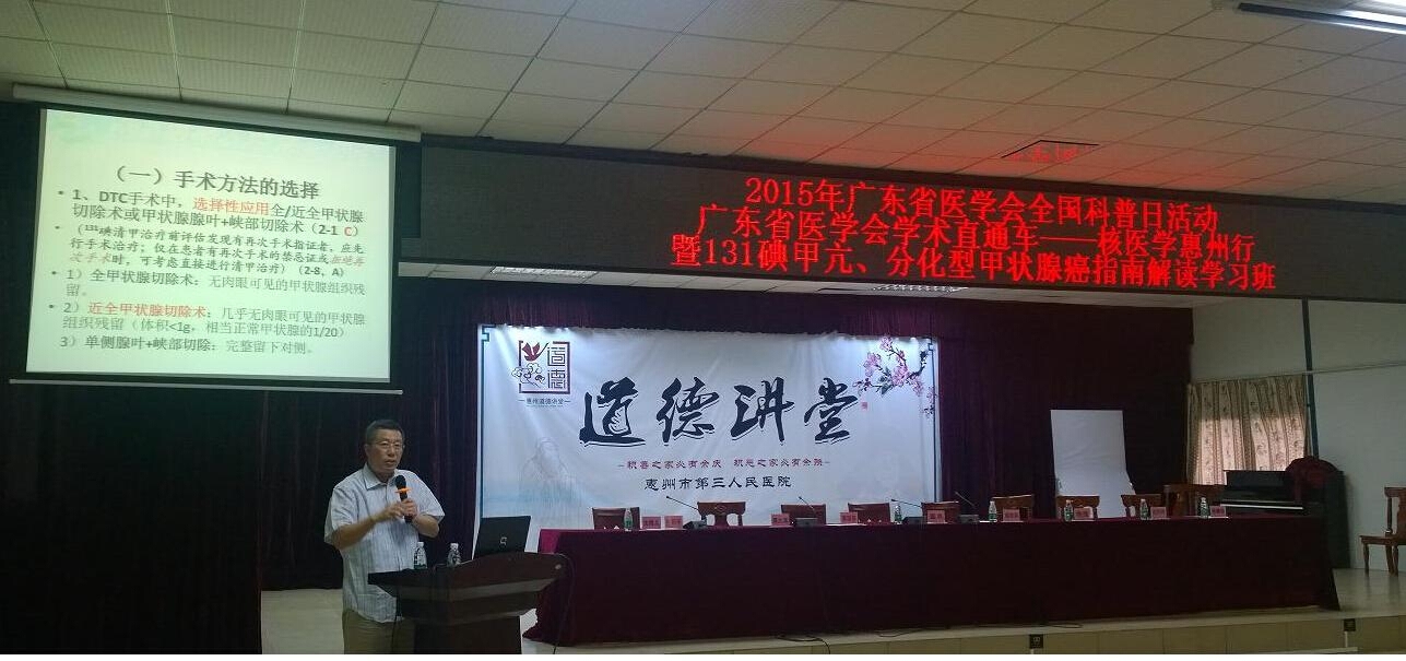 2015年广东省医学会全国科普日活动,广东省医学会学术直通车——核医学惠州行暨放射性131碘治疗甲亢、分化型甲状腺癌指南解读学习班于9月19日在惠州市第三人民医院隆重举行。