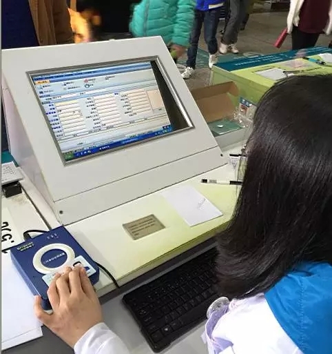 工作人员读取身份证资料及录入资料