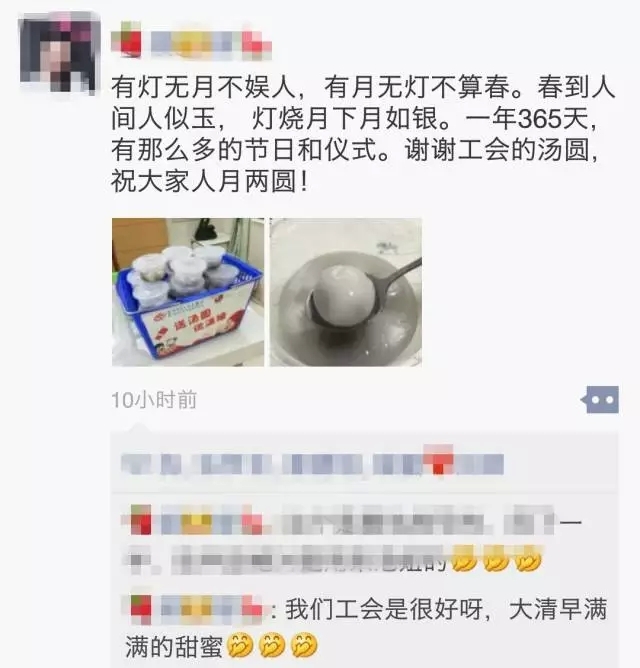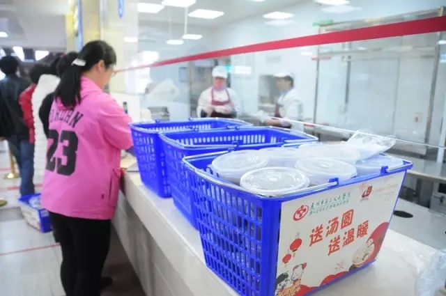 东院区的大家伙们看到工会的同志们来送汤圆,心里也是暖暖的!