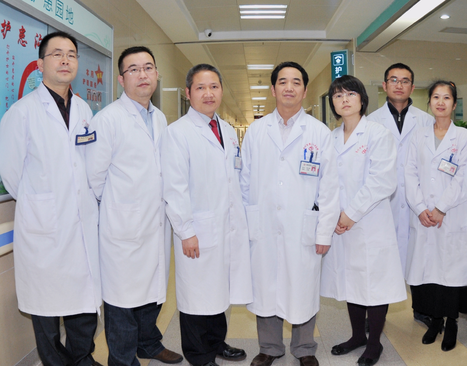 肖纯副院长(左三)、钟思干主任(左四)、杨飞副主任医师(右二)