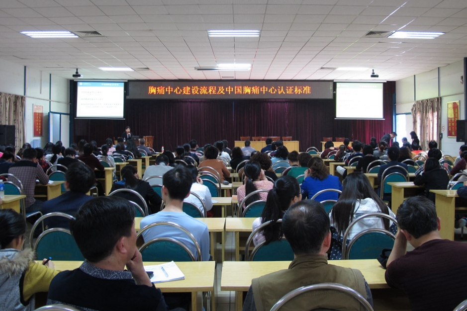 会上,肖纯副院长代表马显力院长作了致辞。他强调,建设胸痛中心不只是心血管内科一个的科室的任务,而是全院各科室包括行政后勤等各部门共同的任务!胸痛中心的建设仍然需要多学科协作及全院职工的共同努力!本次动员大会还特别邀请了中国胸痛中心第一批授权医院广州军区广州总医院的张金霞教授作为本次大会的主讲。