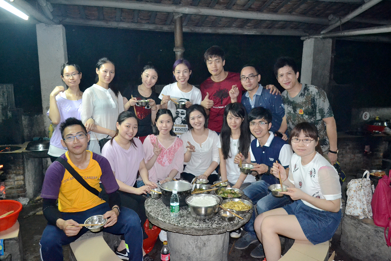 接着2队学员交换场地进行各自的下一项目,等2队学院各自完成自己的第三个项目时,已是黄昏时候,经过短暂的修整大家又集中在一起进行“三甲”应知应会及“五四”青年节有奖知识问答活动。随机组成的8个小组展开了激烈的竞争,一道道内容丰富的题目,一个个精彩的回答,不但让在场的每个人都重新温习了一遍应知应会和“五四”青年结的知识,也活跃了气氛,让大家更融洽的聚集在一起为完成今天的最后一个精彩活动,野炊打下很好的基础。在一排排简易灶头边,8个小组的青年们聚集在一起开始了更激烈的厨艺比拼,做大厨的做大厨,洗菜的洗菜,准备餐具的准备餐具,大家分工协作各展所长,都争着做出一桌最美味的饭菜来。在忙碌的身影中,我们惊奇的发现原来我们中间藏着那么多的美食大神,一人一个拿手菜,不一会时间,周围便浓香弥漫,一桌桌色香味俱全的美食大餐变魔术般展现在大家眼前。劳累了一天的学员们顿时食欲大动,围坐在餐桌前与各色菜式发动了激烈的战争。每个小组还主动的与其他小组分享自己的菜式,相互品评,分享心得,其乐融融。