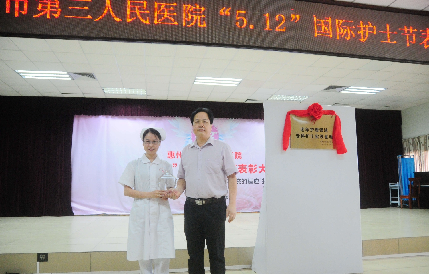 在今年我院“5·12护士节表彰大会”上,马显力院长给我院第1位专科护士培训班的护士授予纪念奖牌。(护理部 李琪)