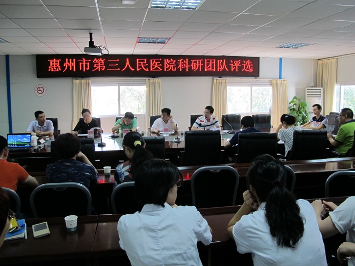 2016年715日上午,我院在行政楼五楼会议室举行惠州市第三人民医院科研团队项目专家评审会,会议邀请了广东医科大学研究生学院何志巍院长,人事处刘新光处长及惠州市中心人民医院袁霞副院长3名专家担任评委,会议由科教部简希尧主任主持。武明鑫院长助理出席了评审会,各科研团队相关人员共计40余人参加了会议。