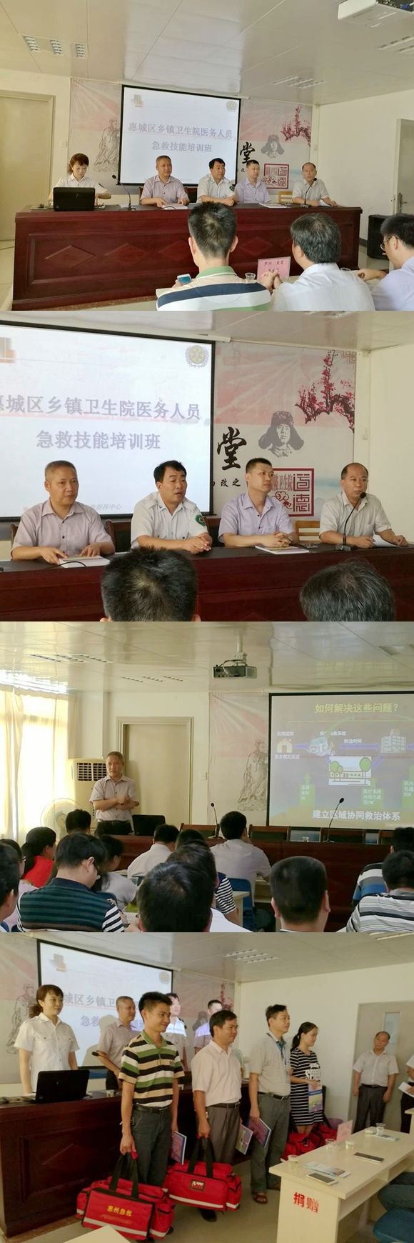 惠州市创伤急救专家武明鑫博士就创伤的现场急救、骨折搬运及检伤分类展开培训,对基层医务人员处理创伤患者的能力提高具有实用价值。市120指挥中心专家进行了2015年心肺复苏国际指南更新点、成人双人心肺复苏规范操作、成人异物梗阻处理及儿童、婴儿异物梗阻处理等方面的培训。