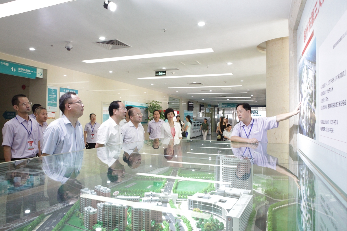 2016年8月25日上午,惠州市政府刘冠贤副市长率市卫计局、市发改局等相关部门来我院东院区调研“市重离子治疗肿瘤基地项目”,惠城区陈高燕副区长、区卫计局、区发改局、区环保分局及我院马显力院长、邓汉东书记等陪同调研。