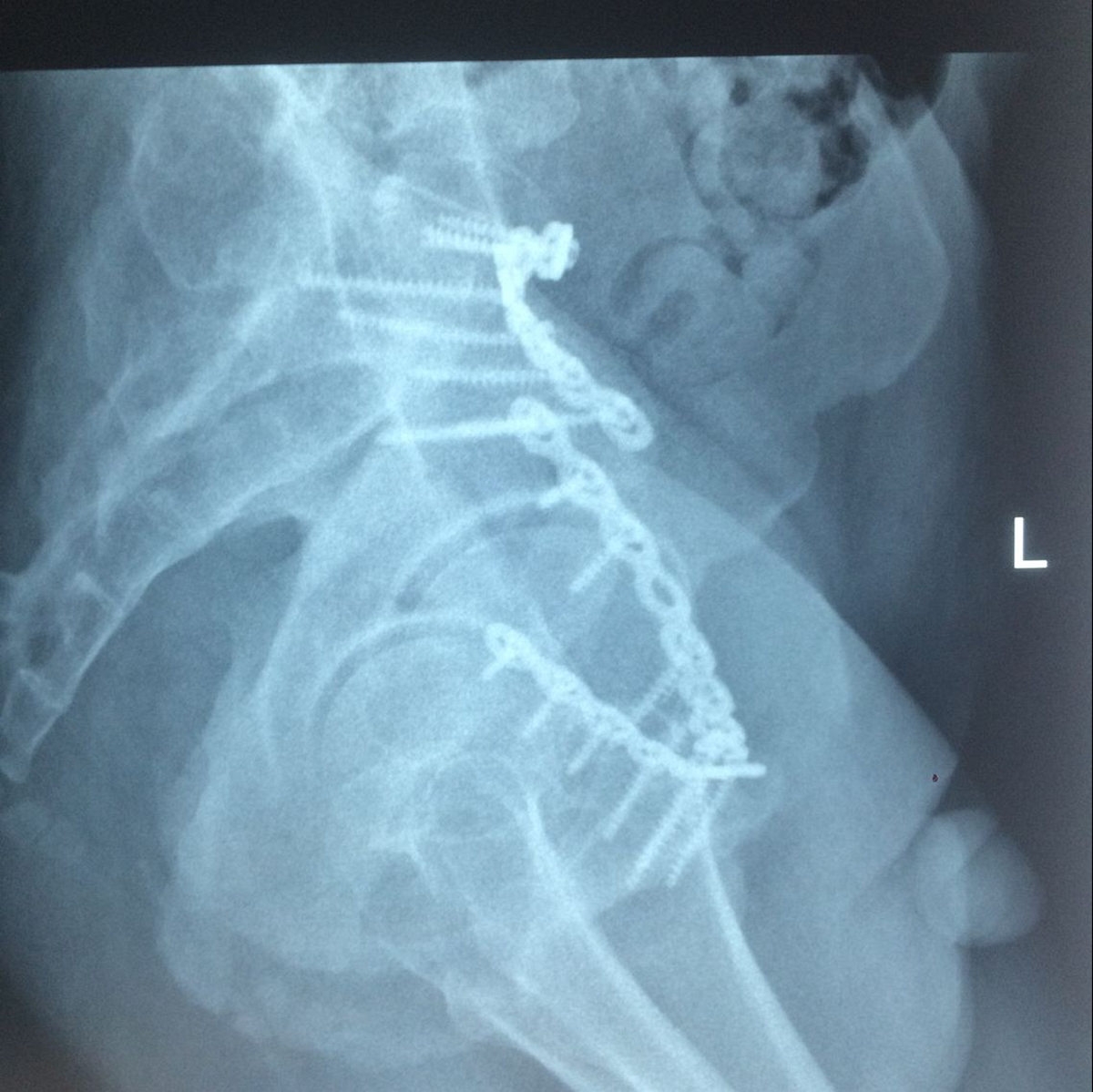 该患者为双前臂桡尺骨远端多发粉碎骨折,骨盆多发骨折(双侧耻骨上下支骨折、右髋臼骨折、右骶骨粉碎性骨折),腰椎多发骨折。骨盆骨折的手术治疗在创伤骨科而言,难度大、技术要求高,较容易出现相关并发症。