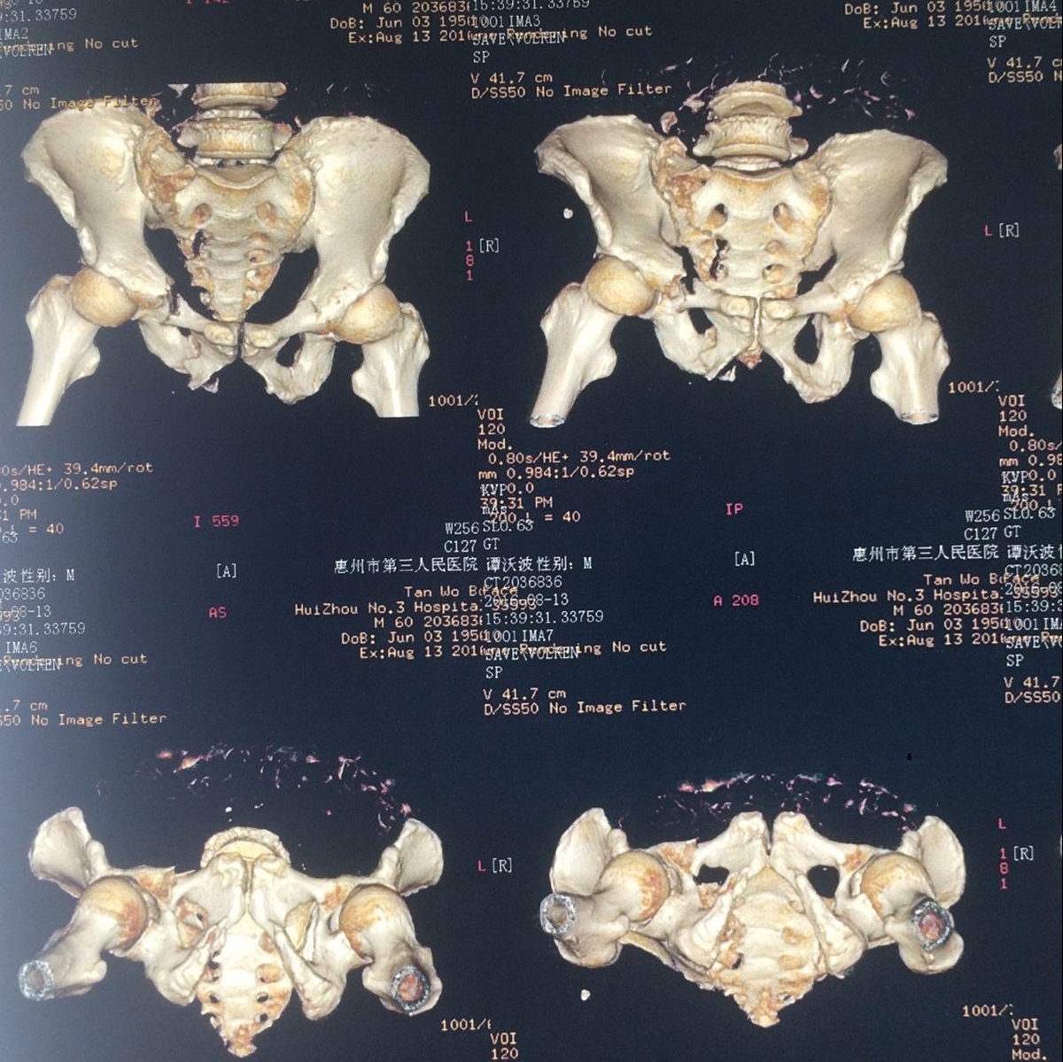 2016年8月12日,惠州市第三人民医院东院区创伤骨科收治了一名多发伤、全身多处骨折的60岁男性患者,从8米高处坠落,致伤全身多处,伤后出现创伤失血性休克,于当地医院ICU住院4天后才转入创伤骨科处理骨折。