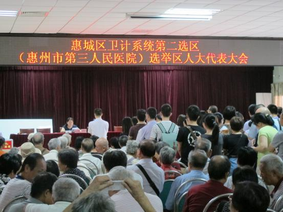 2016年9月21日是惠城区选举区、镇两级人大代表投票选举日。我院作为区卫计系统第二选区,通过召开选举大会、设置流动票箱等进行了选举投票,全院共1454名选民参加了投票选举。我院选举大会由区卫计局梁小红副书记主持。