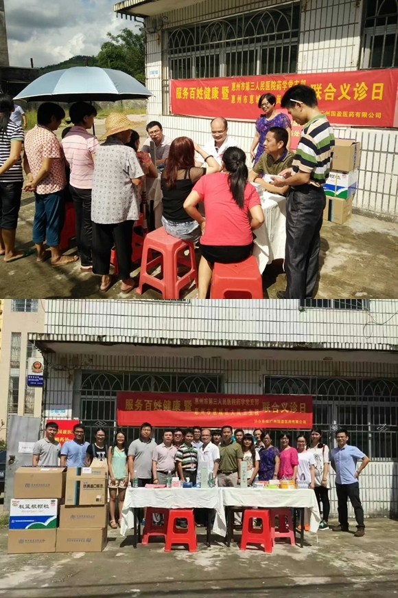 2016年9月10日上午,惠州市第三人民医院药学党支部携手惠城区横沥镇大岚卫生院及广州国盈医药有限公司走进乡镇,联合举办了一场服务百姓健康为居民送医送药的义诊活动。