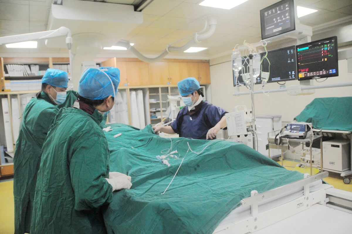 在接病人等待的时间中,导管室相关人员就陆续就位,尽量缩短患者救治时间的延误,患者在救护车上我院心内科住院总就将本病的发病情况、可能出现的后果、下一步紧急救治方案及手术过程可能出现的风险,一一跟患者家属交代清楚,并完成术前谈话签字等一切相关手续,本着先救命,后付钱的宗旨,为患者开通了绿色通道——即患者直接从救护车到导管室,最大限度的缩短了门球时间。