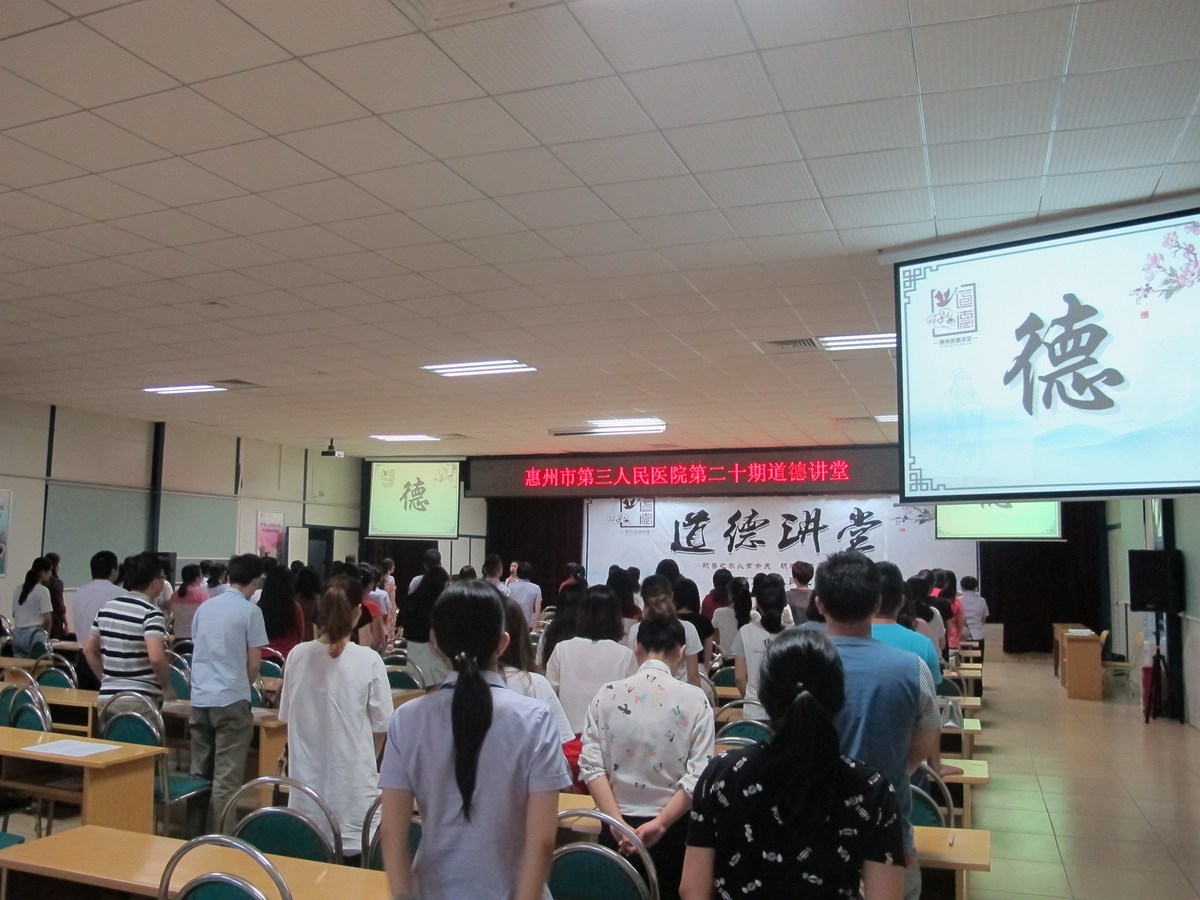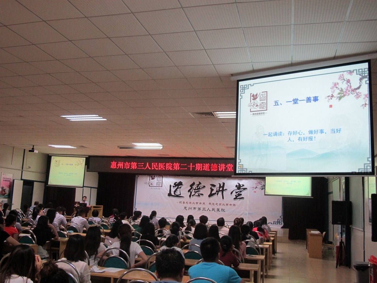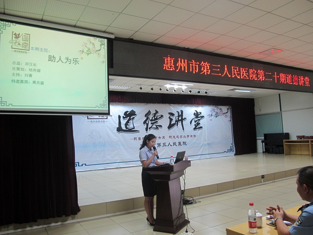 2016年10月24日,医院在工地会议室举办了第二十期道德讲堂。活动由宣传策划办刘菁主持,120多名科室代表踊跃参与,还特别邀请了“惠州好人”、“广东好人”、中国好人榜“助人为乐”候选人黄元盛到现场演讲。