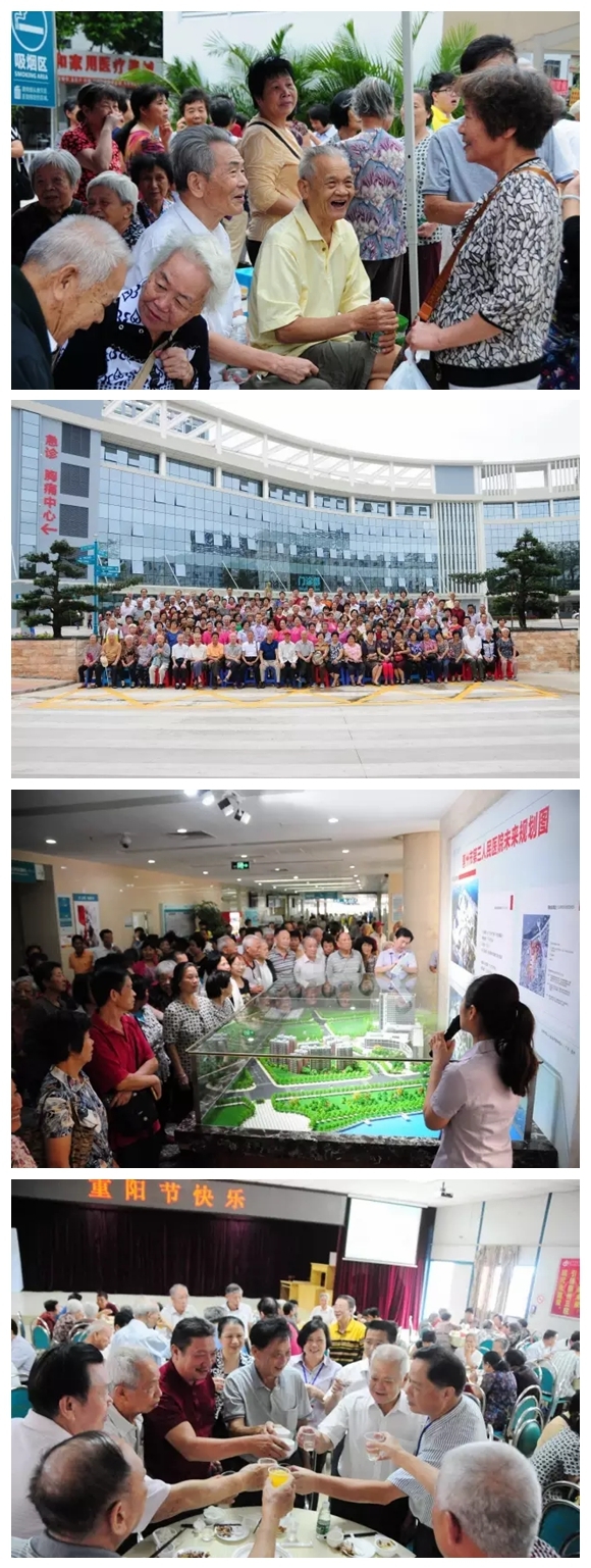 2016年10月9日上午9点30分,在我院的新门急诊楼前,有一群这样老人聚集在此,他(她)们兴奋不已、叽叽咋咋,彼此寒暄着,场面非常热闹。了解后知道,原来今天是每年一度的重阳节,是老人们的节日,我院领导历来都非常重视这个节日,所以今年也不例外,为了让我院退休职工度过一个有意义的节日,也为了让退休员工共同分享医院发展的喜悦,我院组织退休员工今天欢聚于此。今日的节日活动安排非常丰富,包括了合影留念、参观医院发展成果展示、欣赏节目表演、聚餐等一系列活动。