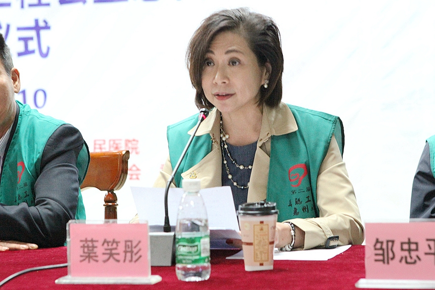 叶笑彤女士代表香港屯门狮子会致辞,她表示东江之水将香港与惠州连在一起,也将狮子会与耳聪工程惠州站连在了一起