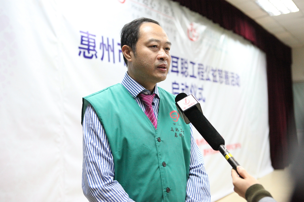 耳聪工程惠州站负责人、惠州市第三人民医院耳鼻咽喉头颈外科王豪主任接受惠州电视台采访,耳聪工程公益事业只有开始没有结束,惠州市第三人民医院将继续为惠州乃至粤东的听障孩子们带来福音