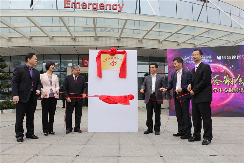 徐云枢、钟文宇、陈高燕、杨勋、马显力、邓汉东等领导同志为旭日急诊医学中心揭幕