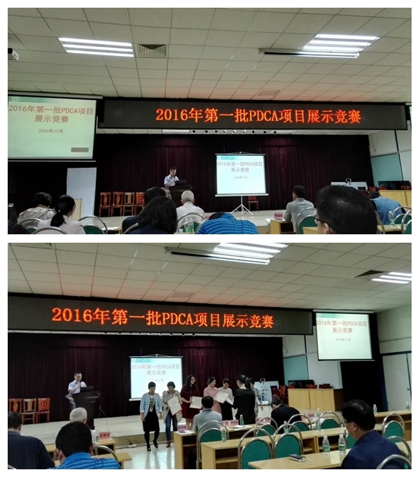 2015年底,评审办组织全院开展持续改进(PDCA)活动,对医院各个工作环节进行审视,找出工作环节的缺陷开展PDCA项目予以持续改进,医院各科室积极踊跃参加,共计36个项目。历经一年的持续改进工作,于2016年8月份对36个PDCA进行验收,择优选取15 个项目进行展示竞赛。