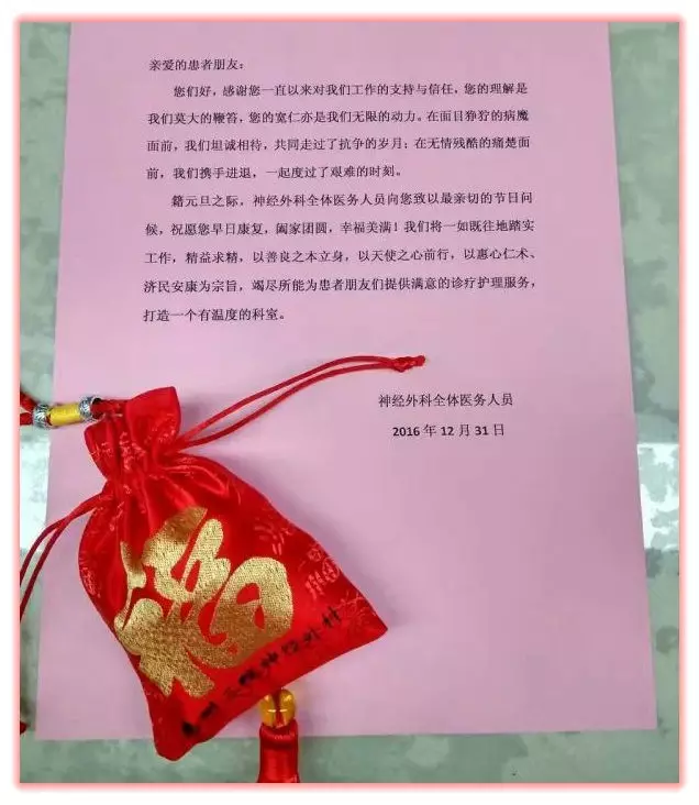 福袋里的每一句祝福的话语都是人文科室神经外科医护人员的肺腑之言!